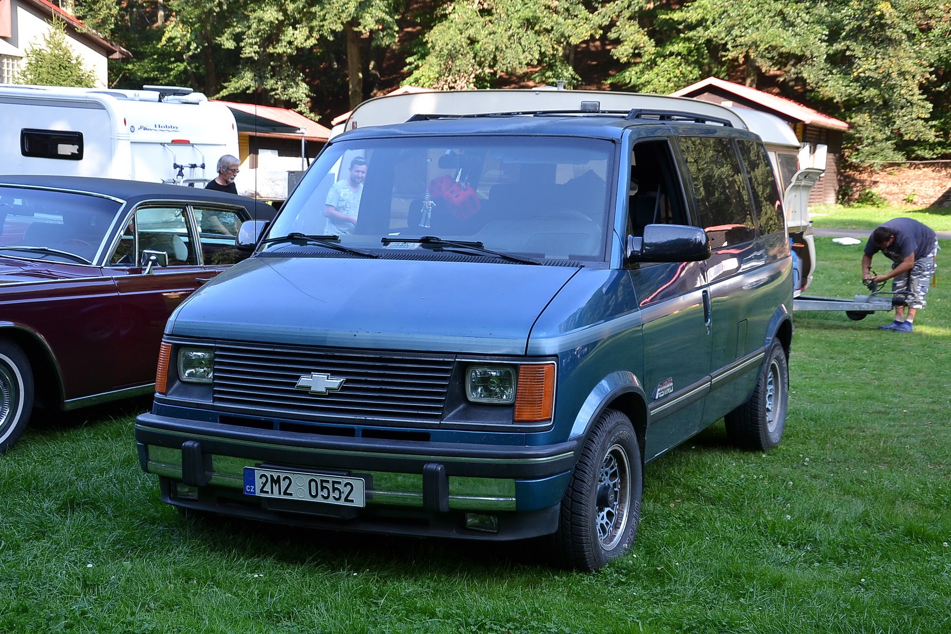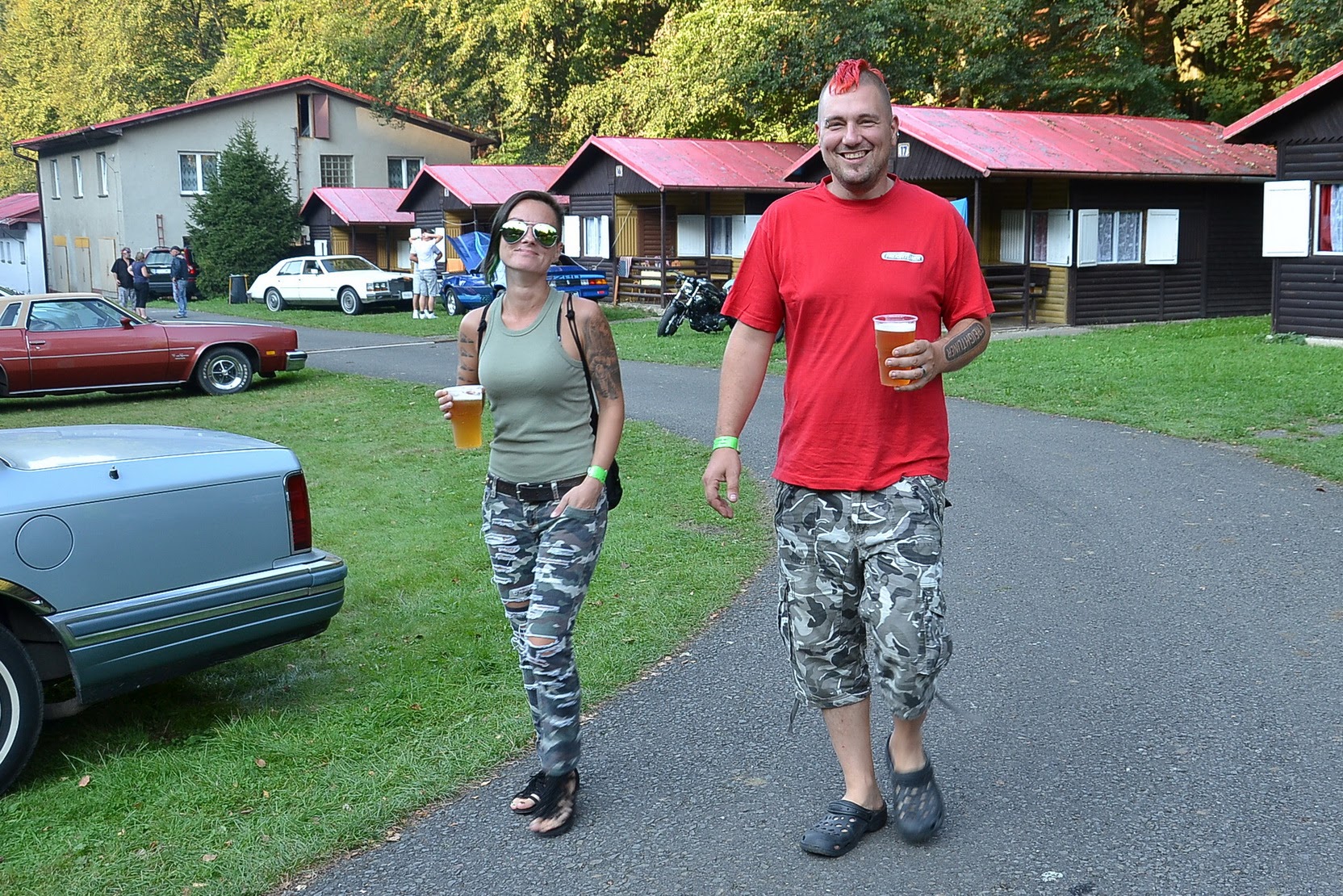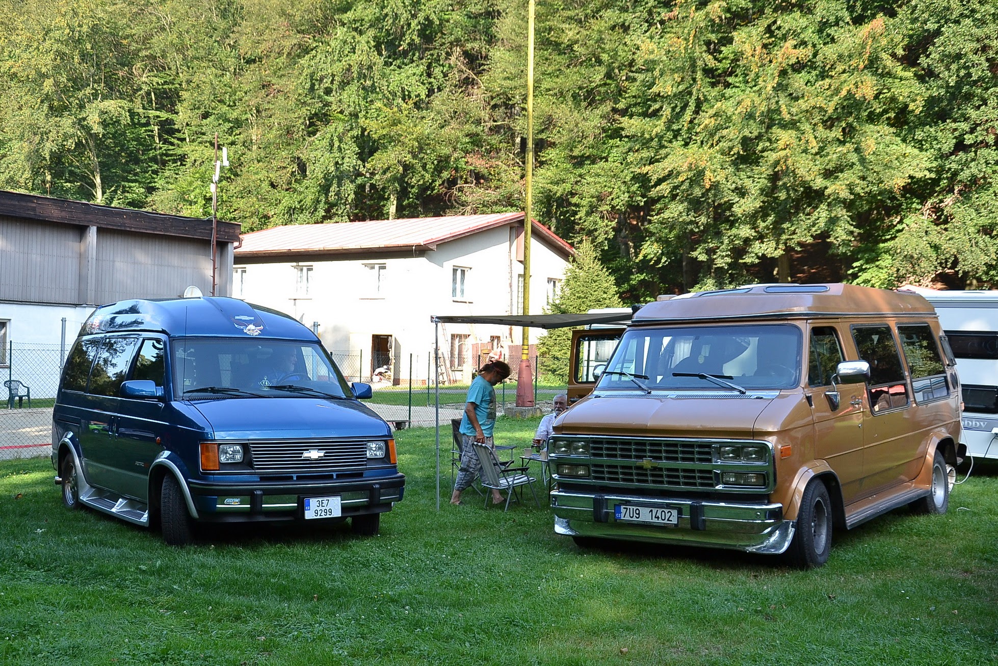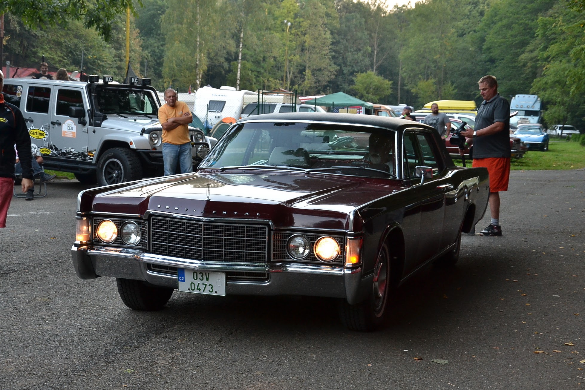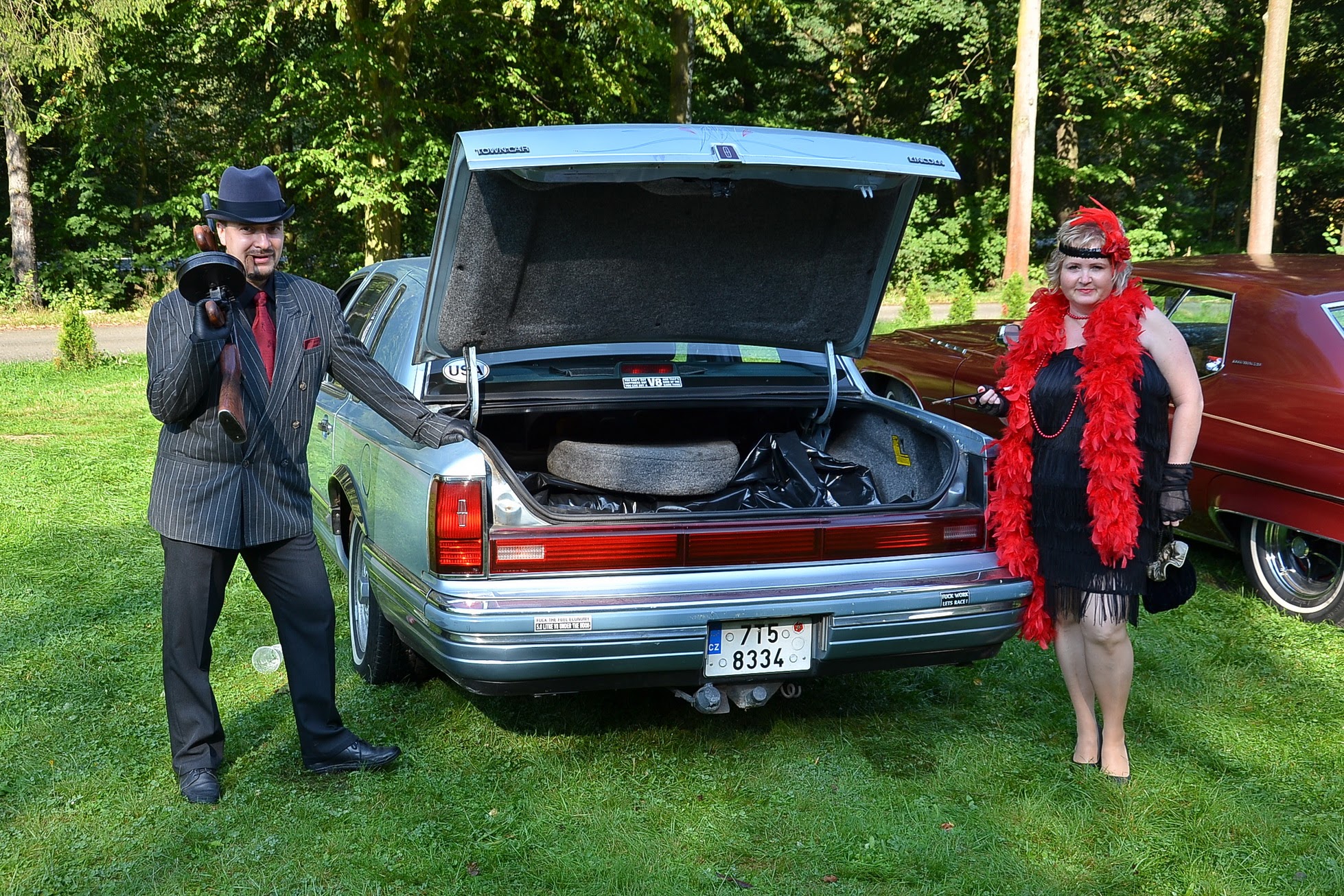 V sobotu časně ráno vstávám a jdu fotit. Celý Kajlovec ještě spí a jediné, co se hýbe, jsou kapky rosy stékající po karoseriích. Až po dlouhé době se začínají otevírat dveře od chat a karavanů a několik rozespalých očí na mě nevěřícně zírá, že jsem vzhůru tak brzy. Zanedlouho zaburácí první vé osmička a hned za ní další. Začínají se sjíždět jak staré známé kousky, tak i novinky. Šálí mě zrak, nebo vidím dobře? Na Kajlovec přijel Don Corleone s chotí. Nebo jsou to Sopranovi? Kdepak. Je to Štajgr s Jarkou a jejich překvapení. Stylově oblečení a příjemně se usmívají. Nemám z toho dobrý pocit, avšak samopal a pohled do kufru Lincolnu na černý pytel, lopatu od hlíny a botu (kterému chudákovi asi patřila?) mi radí, abych se usmíval taky. Co kdybych se náhodou zamračil a zítra spal s rybami v betonových botách.