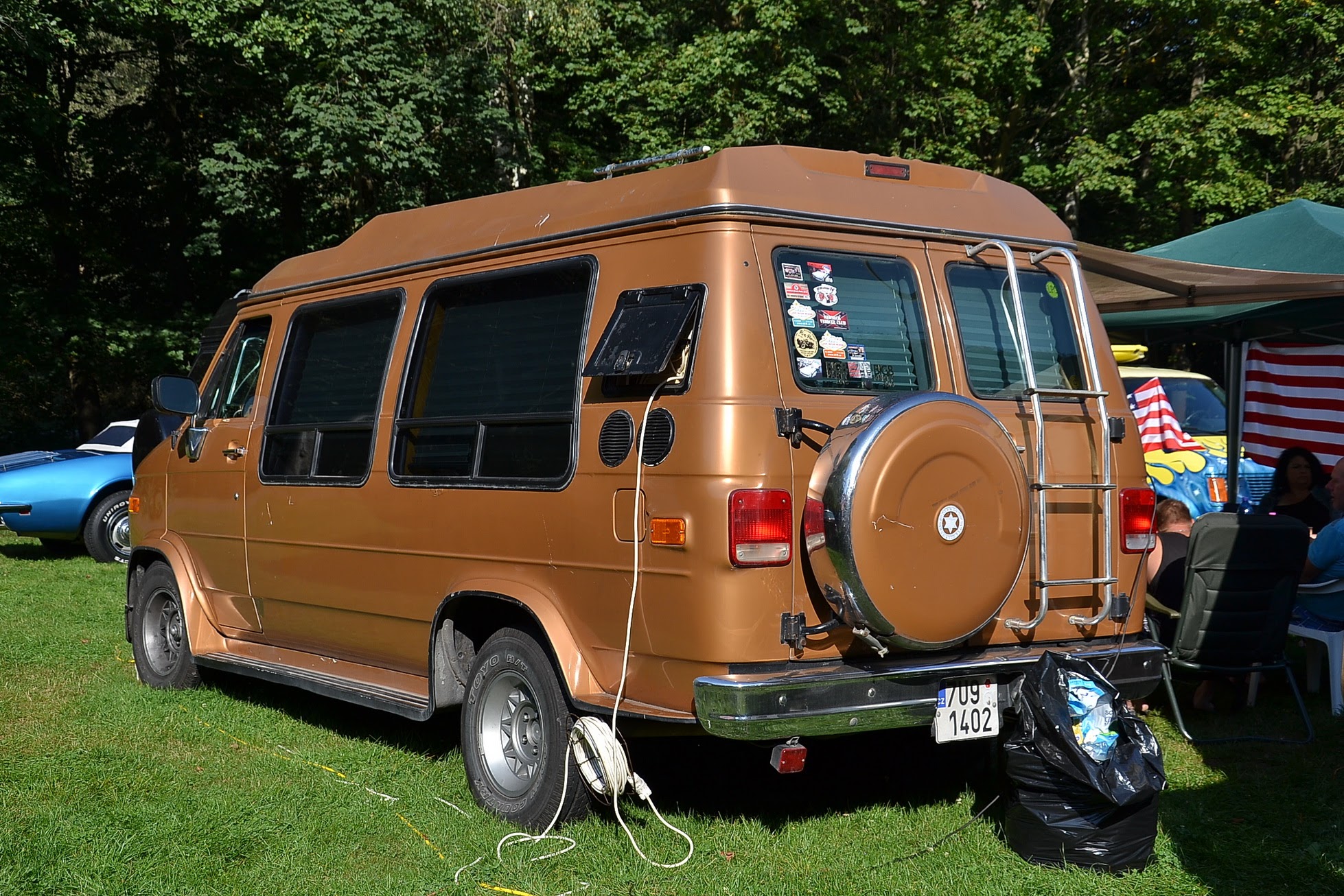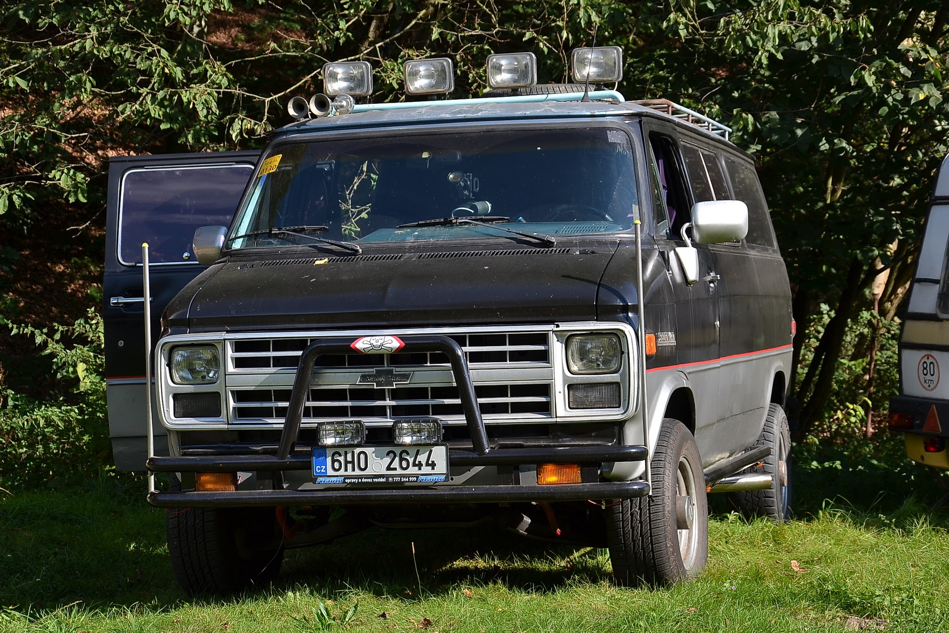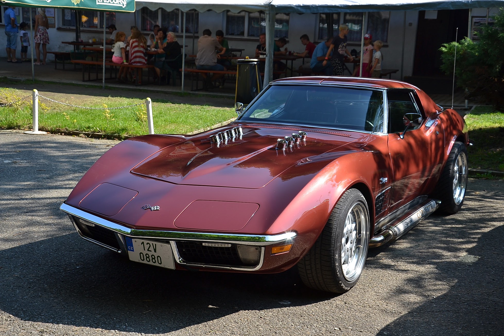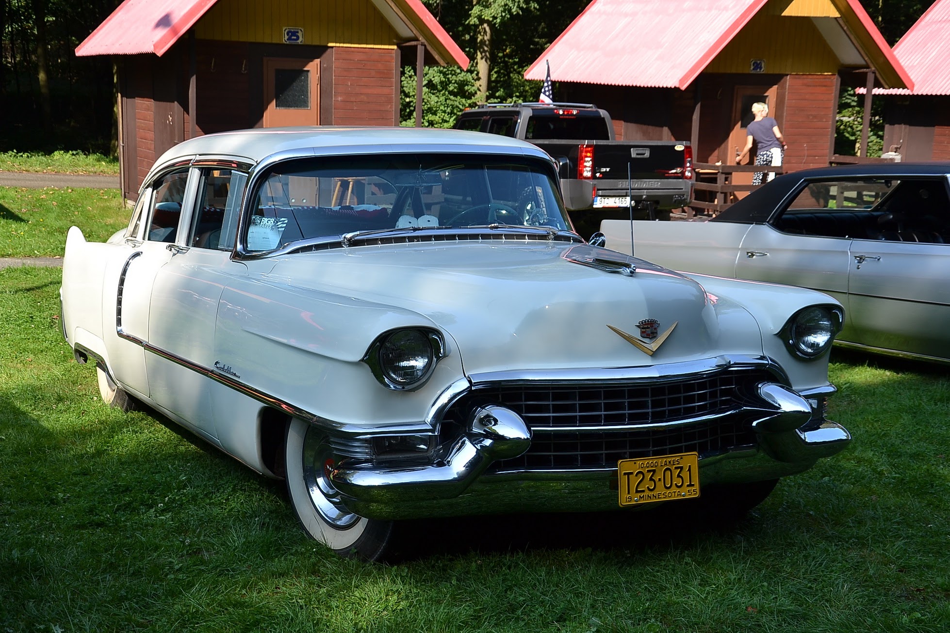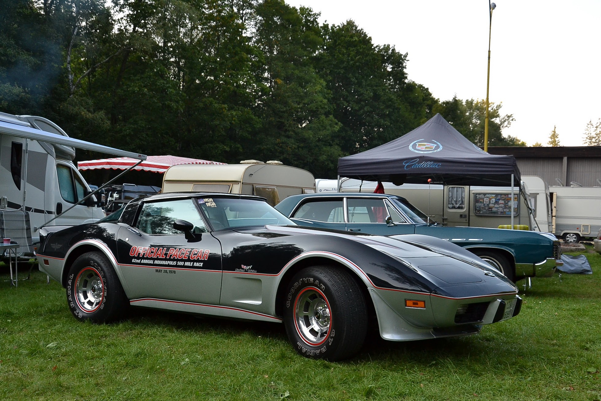 V sobotu časně ráno vstávám a jdu fotit. Celý Kajlovec ještě spí a jediné, co se hýbe, jsou kapky rosy stékající po karoseriích. Až po dlouhé době se začínají otevírat dveře od chat a karavanů a několik rozespalých očí na mě nevěřícně zírá, že jsem vzhůru tak brzy. Zanedlouho zaburácí první vé osmička a hned za ní další. Začínají se sjíždět jak staré známé kousky, tak i novinky. Šálí mě zrak, nebo vidím dobře? Na Kajlovec přijel Don Corleone s chotí. Nebo jsou to Sopranovi? Kdepak. Je to Štajgr s Jarkou a jejich překvapení. Stylově oblečení a příjemně se usmívají. Nemám z toho dobrý pocit, avšak samopal a pohled do kufru Lincolnu na černý pytel, lopatu od hlíny a botu (kterému chudákovi asi patřila?) mi radí, abych se usmíval taky. Co kdybych se náhodou zamračil a zítra spal s rybami v betonových botách.