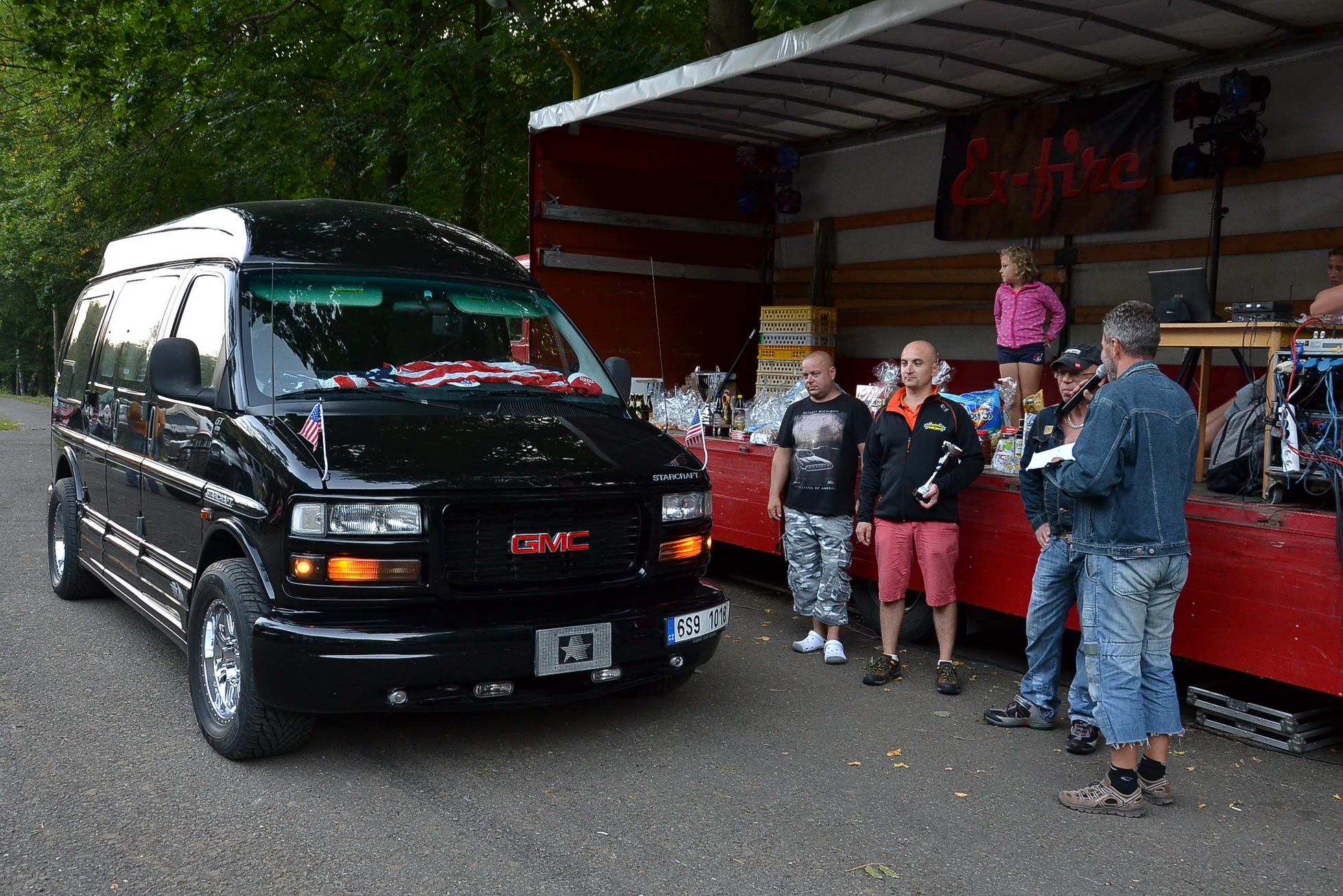 Hned u brány Kajlovce nás vítá Štajgr, který mi prozrazuje, že pro nás mají s Jarkou na zítra překvapení. Jen tak tak se držím, abych z něj to tajemství nezačal lámat. Ale ne. Doba, kdy jsem slídil ve skříních a hledal vánoční dárky je dávno pryč, takže nebudu jako malé děcko a nechám se překvapit. Stejně, jako vloni, jsme dovezli kontraband přes 50 litrů burčáku. Stavíme ho vedle sudů s pivem a hned přemýšlím, jak dlouho ty hektolitry asi vydrží. Počítám, že většina padne za vlast do časných ranních hodin, akorát to někdo bude muset pít i za mě, protože chci být čerstvý na nějaké to noční focení. Tyto úvahy mi přeruší nezaměnitelný zvuk dieselu. Cummins je prostě Cummins a takový zvuk se nedá s ničím splést, takže je jasné, že jede Lukáš s Freightlinerem a za ním zbytek party. Pozdě odpoledne se začíná kouřit z grilu, kapela ExFire obsazuje pódium a Beer Party je v plném proudu.