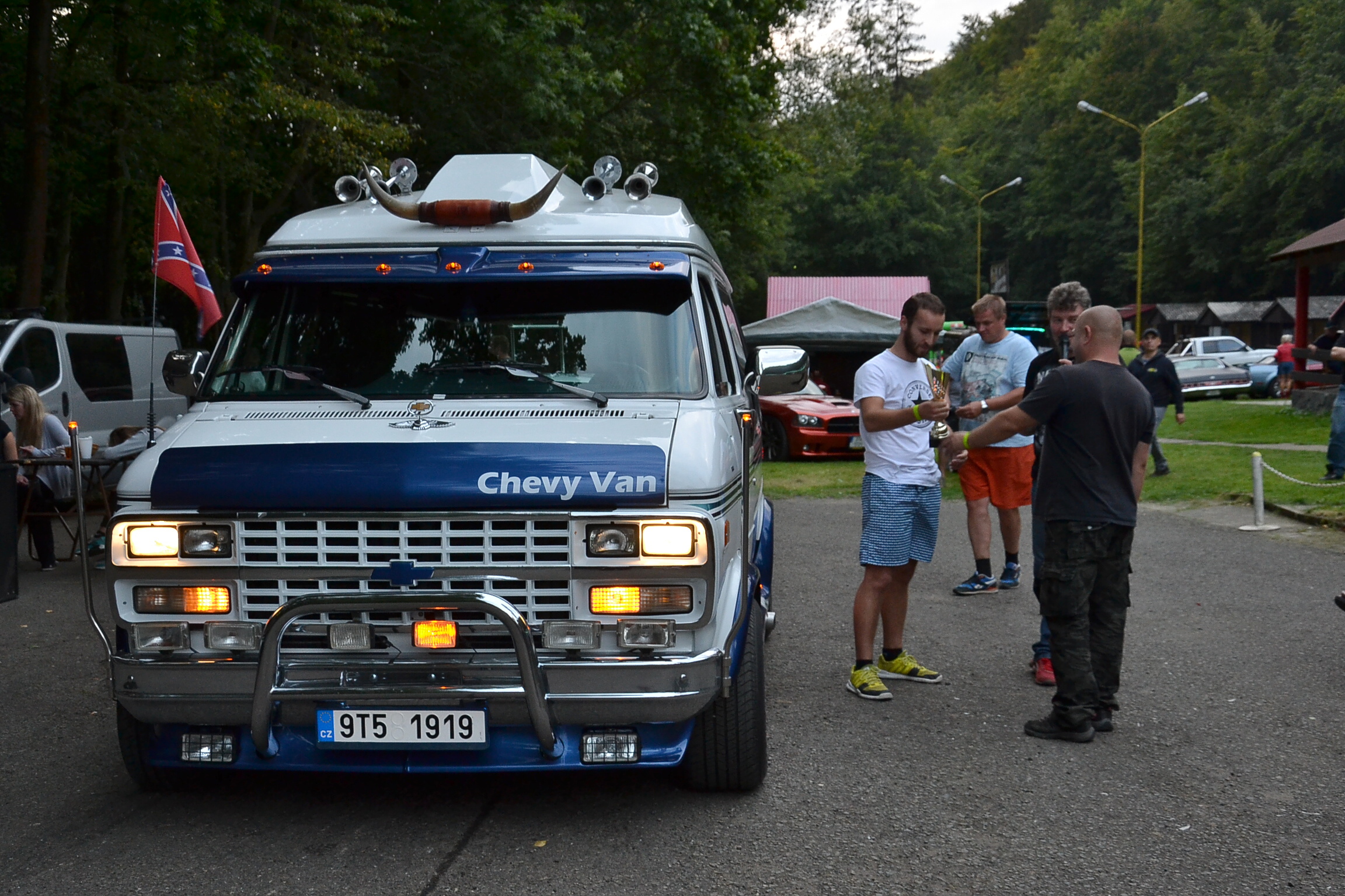 „Už znám program celého srazu, takže vím, na co se můžu těšit a že mě čeká to a to.“ říkáte si? Omyl! Takový sraz může být totiž plný nečekaných událostí. Tak pěkně od začátku. Opět máme bojový úkol dovézt tři bečky burčáku. Deset minut před příjezdem do kempu si trochu střílím z Dušana a volám, jestli už máme vyjet, abychom ten zlatavý mok dovezli včas. Vsázet se s někým, jestli zde už bude Miloš s Alenou by byla v případě odpovědi „ne“ jistá prohra. Jejich zlatý Chevy Van vidím už ze silnice a jsem rád, že na srazy jezdí i takoví nadšenci, pro které není problém dojet za přáteli několik set kilometrů. Žádné výmluvy, jak je to daleko. Nejsou sami, kdo přijeli z větší dálky, jsou zde i další kamarádi z Pardubicka nebo ze Slovenska. Začíná páteční párty, tak, jak to máme rádi a jak jsme na to zvyklí. Hraje naše oblíbená kapela Ex-Fire, máme se o čem bavit, témat je nepřeberné množství a abychom si stihli říci všechno, musel by mít den minimálně sto hodin. Večer začínáme cruisovat. Nasedám do Štajgrova Lincolnu a objíždíme kemp, občas se zastavujeme a od zadních kol se vznáší oblaka dýmu, protože novým pneumatikám je potřeba ukázat, že existuje i něco jiného, než jízda po silnici. Když se dostatečně projedeme, uchylujeme se do chaty na pokec. Záchvaty smíchu chatou doslova otřásají a tak jdeme raději ven, aby měli Štajgr s Jarkou vůbec kde přespat. Jdeme ke stanu zjistit, jestli ještě zbylo trochu burčáku, ale cestou narážíme na skákací hrad a... měníme se v děti.
