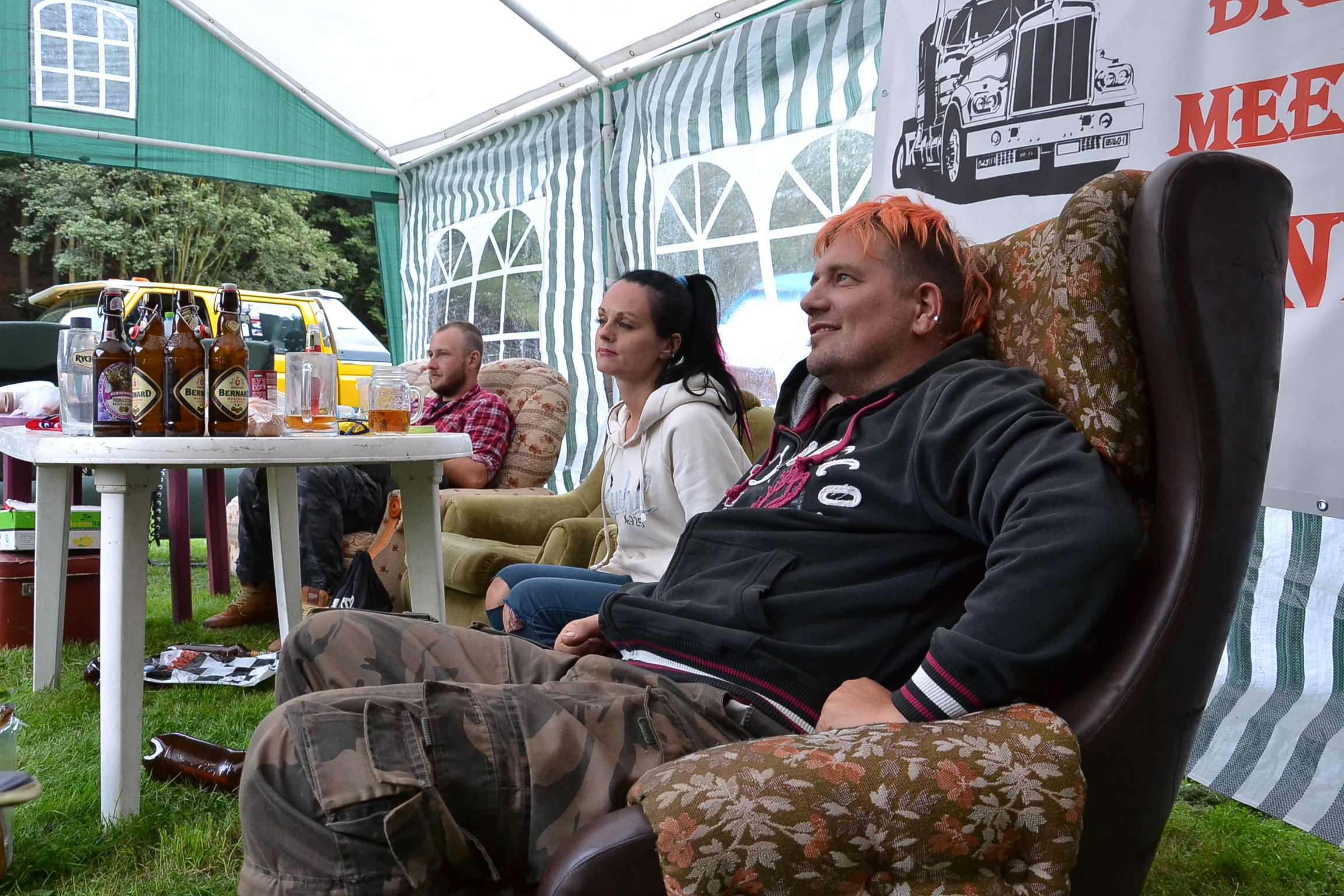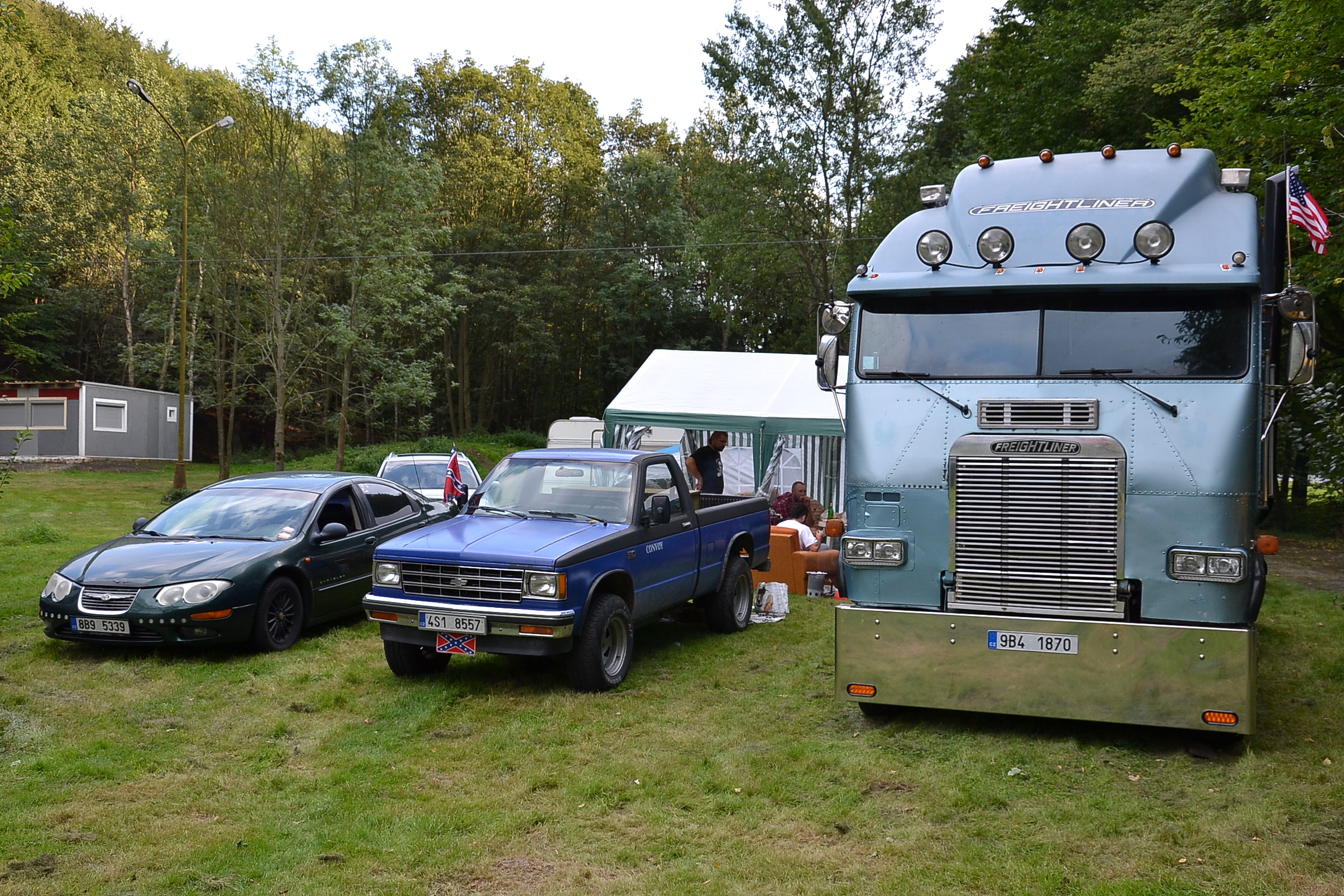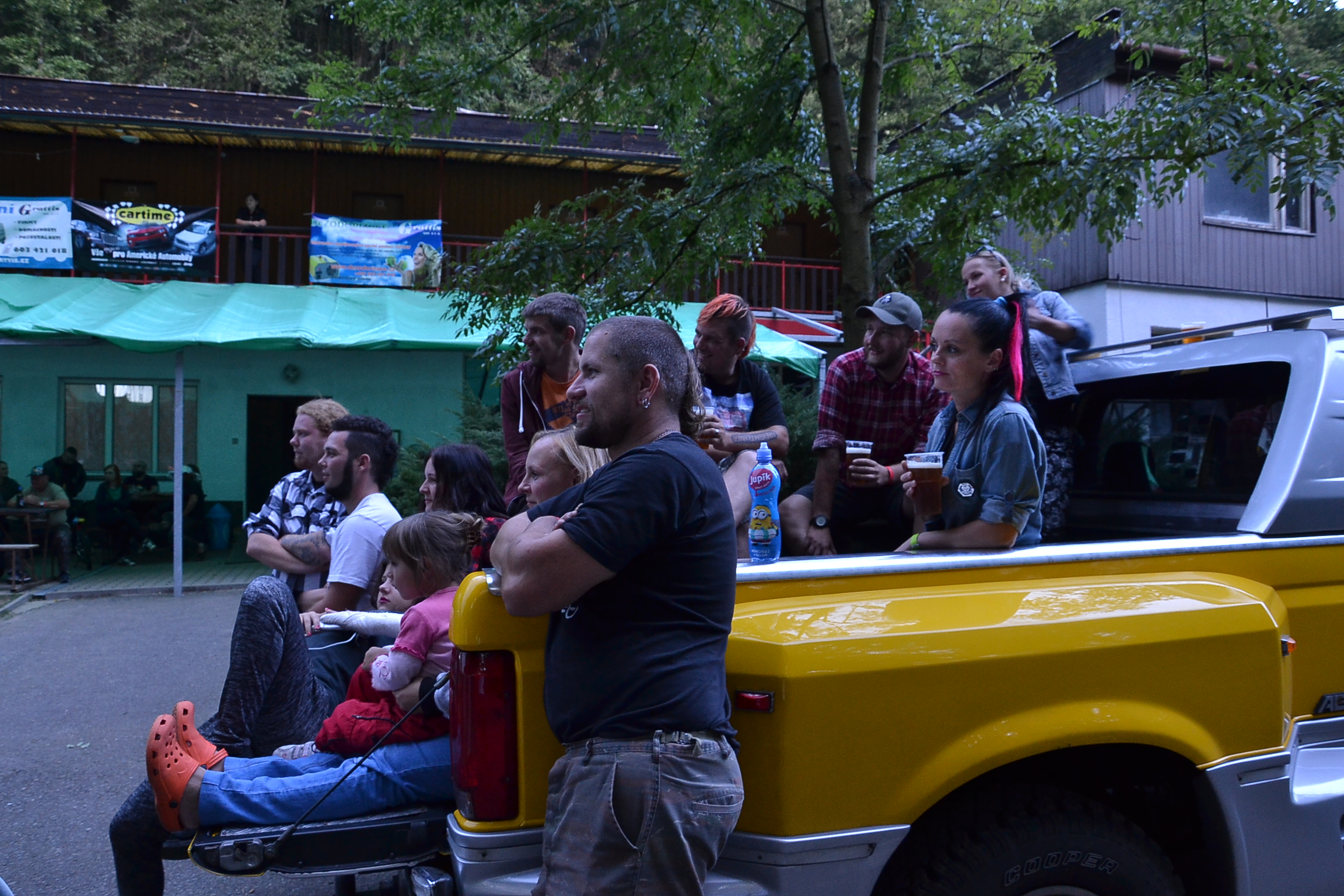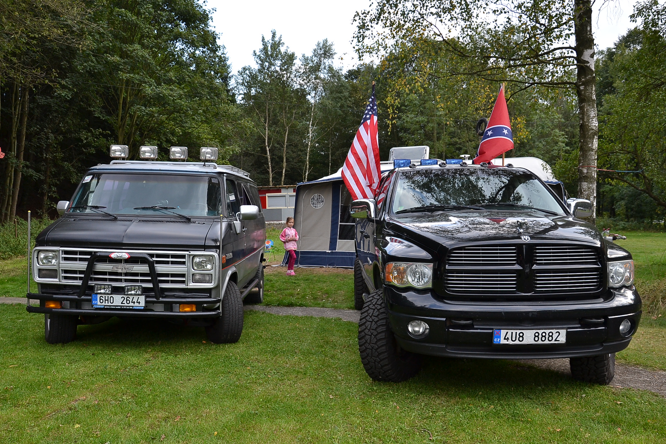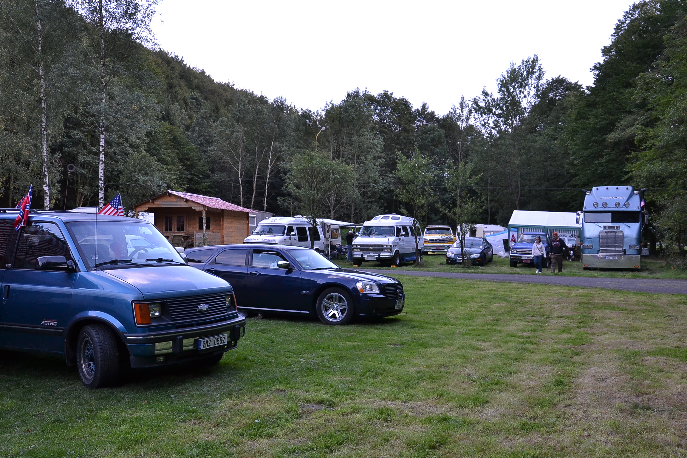 „Už znám program celého srazu, takže vím, na co se můžu těšit a že mě čeká to a to.“ říkáte si? Omyl! Takový sraz může být totiž plný nečekaných událostí. Tak pěkně od začátku. Opět máme bojový úkol dovézt tři bečky burčáku. Deset minut před příjezdem do kempu si trochu střílím z Dušana a volám, jestli už máme vyjet, abychom ten zlatavý mok dovezli včas. Vsázet se s někým, jestli zde už bude Miloš s Alenou by byla v případě odpovědi „ne“ jistá prohra. Jejich zlatý Chevy Van vidím už ze silnice a jsem rád, že na srazy jezdí i takoví nadšenci, pro které není problém dojet za přáteli několik set kilometrů. Žádné výmluvy, jak je to daleko. Nejsou sami, kdo přijeli z větší dálky, jsou zde i další kamarádi z Pardubicka nebo ze Slovenska. Začíná páteční párty, tak, jak to máme rádi a jak jsme na to zvyklí. Hraje naše oblíbená kapela Ex-Fire, máme se o čem bavit, témat je nepřeberné množství a abychom si stihli říci všechno, musel by mít den minimálně sto hodin. Večer začínáme cruisovat. Nasedám do Štajgrova Lincolnu a objíždíme kemp, občas se zastavujeme a od zadních kol se vznáší oblaka dýmu, protože novým pneumatikám je potřeba ukázat, že existuje i něco jiného, než jízda po silnici. Když se dostatečně projedeme, uchylujeme se do chaty na pokec. Záchvaty smíchu chatou doslova otřásají a tak jdeme raději ven, aby měli Štajgr s Jarkou vůbec kde přespat. Jdeme ke stanu zjistit, jestli ještě zbylo trochu burčáku, ale cestou narážíme na skákací hrad a... měníme se v děti.