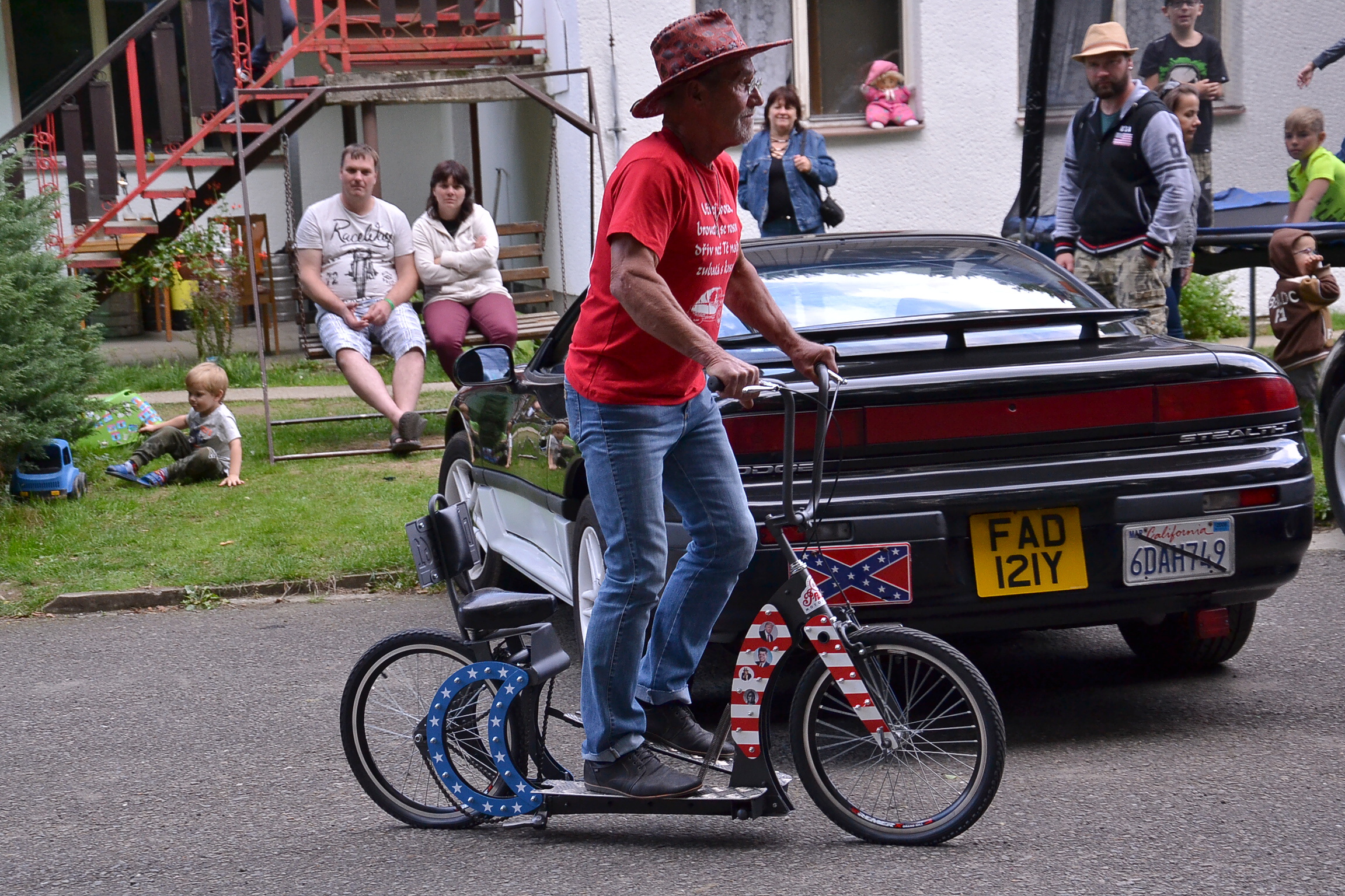 Po obřadu dostává slovo Vlastík a opět všechny udivuje svou nápaditostí a zručností. Jeho americko-evropská koloběžka, poháněná buď odrážením nohou nebo šlapáním na pedály, má obrovský úspěch. Po zbytek dne se opět bavíme, předávají se poháry, dražíme dřevěnou sochu z dílny uměleckého řezbáře pro dobročinné účely a diskutujeme až do hluboké noci. Big 8 Party byla opravdu plná nečekaných momentů, ale i jedné věci, která se nemění – pokaždé, když přijedete na tento sraz, ocitnete se ve víru zábavy s fajn lidmi.